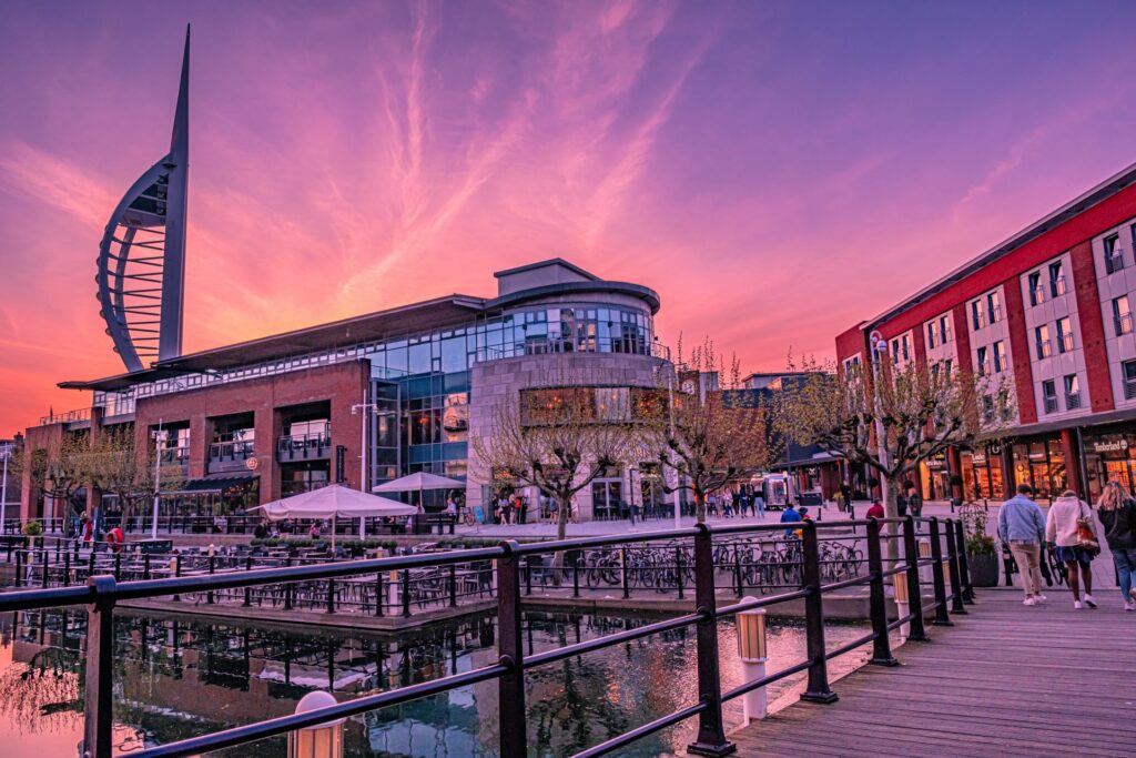 Waterfront, shopping, dining and entertainment at Gunwharf Quays is a must.