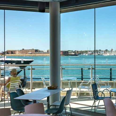 Set right on the water’s edge, the café features floor-to-ceiling glass windows, an open, airy layout, and a spacious outdoor terrace – the ideal place to relax and take in the harbour views.