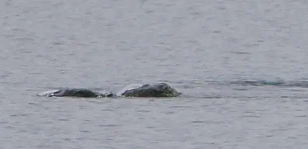 At first I wondered if it was an otter or a pair of otters or a seal, but we never saw a head and it never came up again for air. It was making this strange movement on the surface. We did not hear any sound. There were these strange shapes below the surface. I could not make out any colours – the water was dark. I could not accurately assess its length, but the two parts that were visible were less than two metres long together.