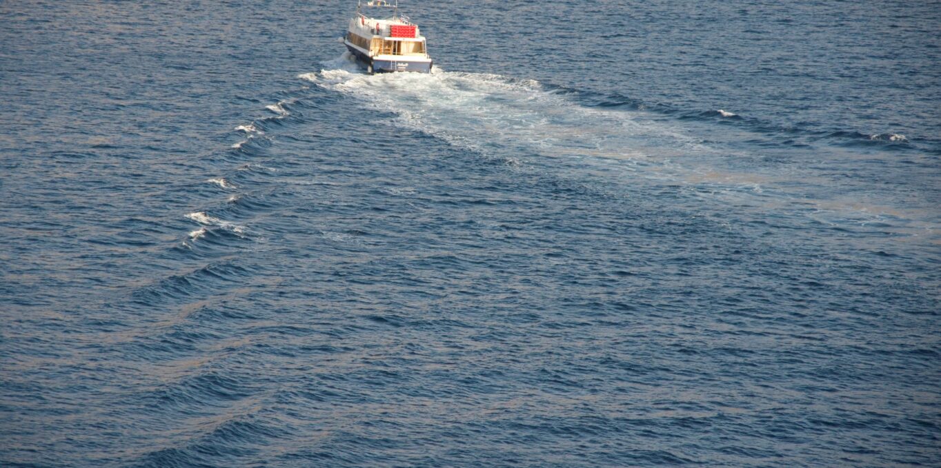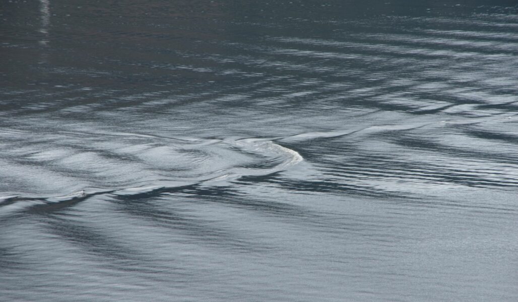The interaction between wakes of more than one vessel or of wakes meeting from a single vessel that has turned can cause very varied effects, including one described as ‘the standing wave’. It is most often seen off Urquhart Castle where multiple cruise boats turn around to view the castle, causing particularly complex and spectacular effects. As the wakes intersect, some combine to make higher waves and can appear to remain almost stationary as more and more waves interact replenishing the energy.
