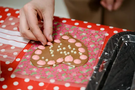 - Customise a pre-made chocolate bar with handwritten messages using a piping bag.